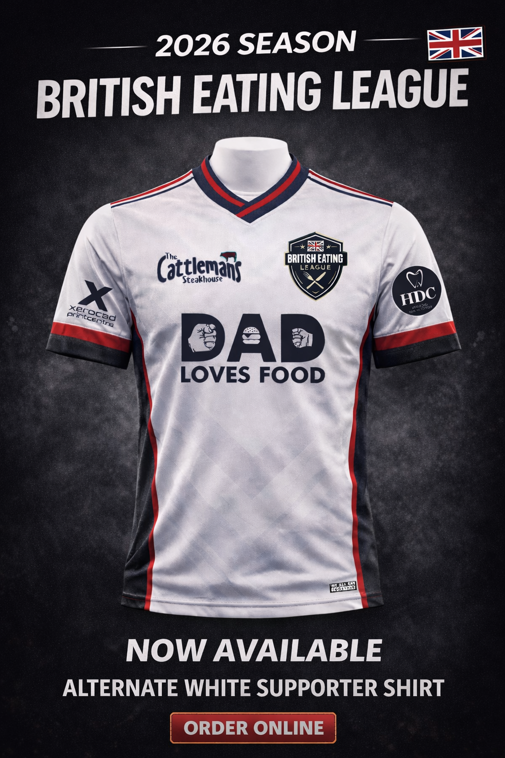 2026 Season Official British Eating League White Shirts.
